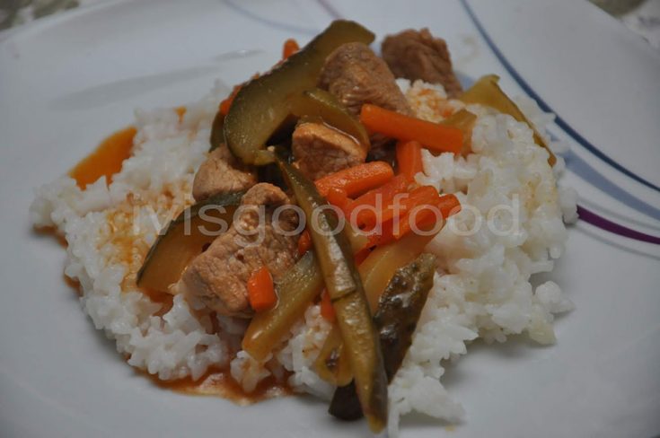 Свинско с кисели краставички и лимонов ориз